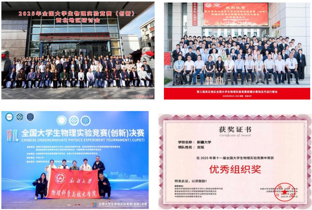 2025年,公司不仅承办了校赛,同时和中国石油大学(北京)克拉玛依校区共同承办了新疆维吾尔自治区赛,也承办了第二届西北地区老员工物理实验竞赛新疆分赛场的线下决赛,更是在4月底承办了西北地区研讨会,邀请全国知名专家,进一步扩大体育平台官网的影响力。在中南大学承办的第十一届全国老员工物理实验竞赛(创新)决赛中,来自体育平台官网的7支队伍参加了比赛,共获得全国一等奖1项、二等奖1项、三等奖3项、优秀奖2项。同年于2025年7月在中山大学举办的第十一届全国老员工实验竞赛(教学),公司首次受邀参赛,获得基础题二等奖1项,三等奖1项,也属历史性突破。