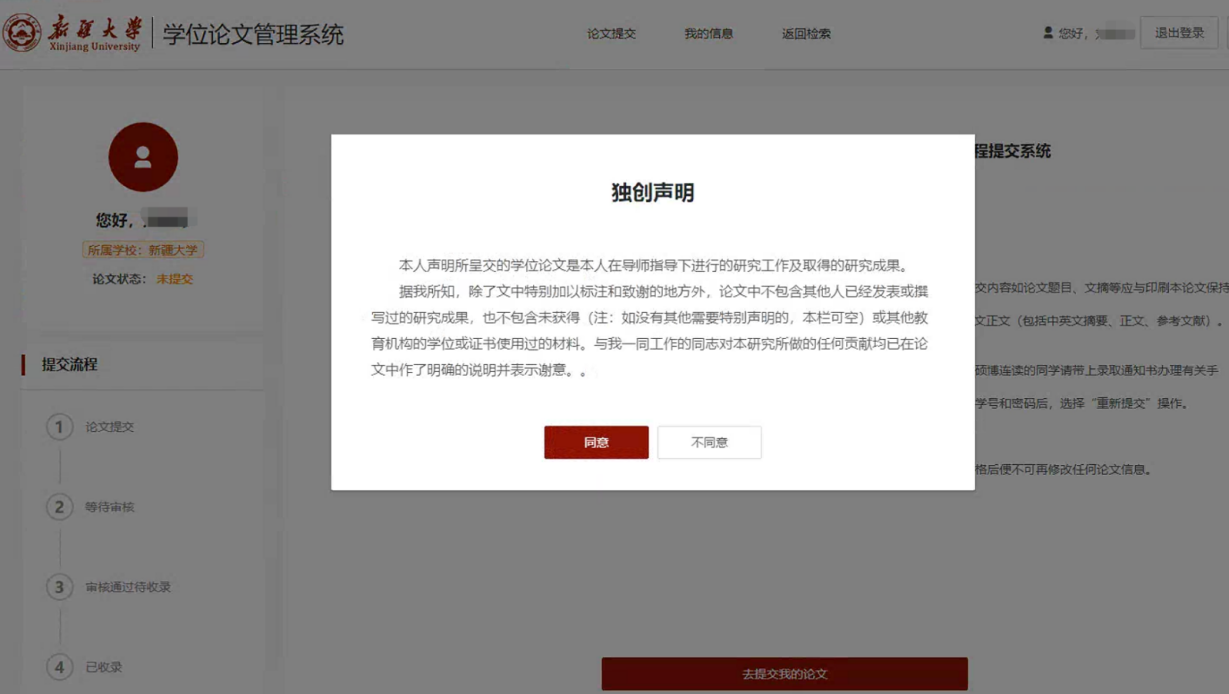 第三步:仔细阅读提交说明,同意独创声明