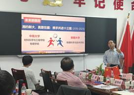 会议围绕基层党建、干部教师援疆、公司产品、科学研究、人才培养等多个主题开展了深入而广泛的交流。中南大学援疆干部、公司副经理欧阳方平教授作了“湘约新大、携手共进13年—共创辉煌、未来可期”报告,回顾了13年来中南大学组团式包建物理学科和材料学科的对口援疆工作成绩与成效,体育平台官网物理科学与材料团队建设获得长足发展:派出了多名实干担当的干部和教师在一线对口支援工作,成功申报物理学一级学科博士点和国家级一流建设专业,完成材料科学与工程本科专业的建设,成功申报自治区重点实验室、自治区创新团队、自治区重点项目,加快人才队伍、教学科研平台、一流专业、一流课程和基层党支部红色堡垒的建设。双方期望在团队培养、人才队伍建设、科学研究、一流专业建设等方面取得更大进步,获得重大标志性成果。