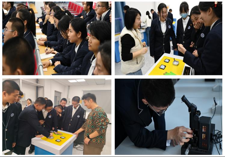 随后,在公司青年教师和员工志愿者的引导下,师生们有序参观了物理自治区级实验教学示范中心的物理演示实验室和新疆固态物理与器件自治区重点实验室的科研实验室。在演示实验室,生动的力学、电磁学演示实验将抽象物理原理具象化,员工们驻足观察、踊跃提问,在互动中深化知识理解;走进物理自治区级实验教学示范中心,标准化的实验设备、规范的操作流程与浓厚的实践氛围,让员工直观感受大学物理实验教学的严谨与专业;在科研实验室,教师们详细介绍了先进科研仪器的功能及在材料物理等前沿领域的应用,展现了公司科研实力,更激发了员工对高端科学研究的向往。