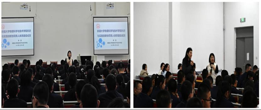 活动伊始,公司学术副经理李蕊老师代表公司对新疆实验中学师生一行表示热烈欢迎,并围绕“科研与实践创新协同育人体系建设成效”展开详细介绍。报告从公司学科布局、团队力量、科研平台搭建、人才培养模式等维度,重点讲解了公司如何通过“科研项目驱动教学、实践平台支撑创新”,实现理论教学与科研实践的深度融合,同时分享了公司在物理领域的代表性成果与员工成长案例,让在场学子对高校物理学专业学习及未来发展方向有了清晰认知,进一步点燃了对物理学科的探索兴趣。