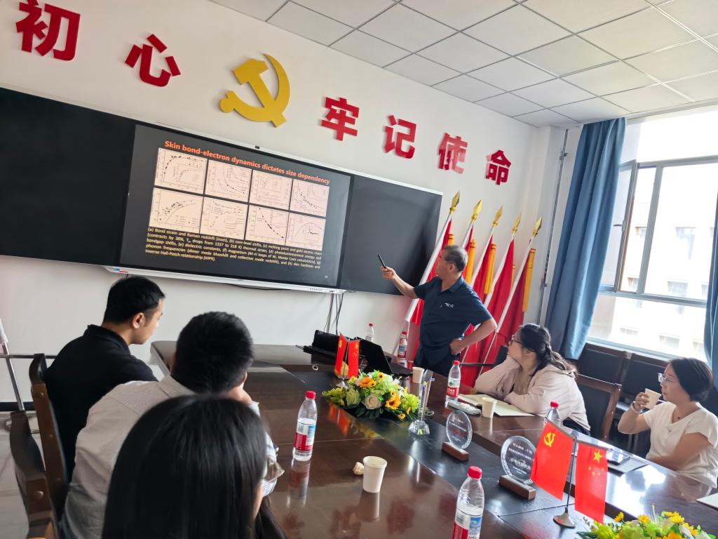 2025年8月18日,孙长庆教授应邀进行了题为“报告题目:纳米尺度本征属性与化学活性探索”的学术报告。报告会由物理公司吕国梁经理组织,张蓓教授主持,部分教师代表和研究生参加了此次报告。