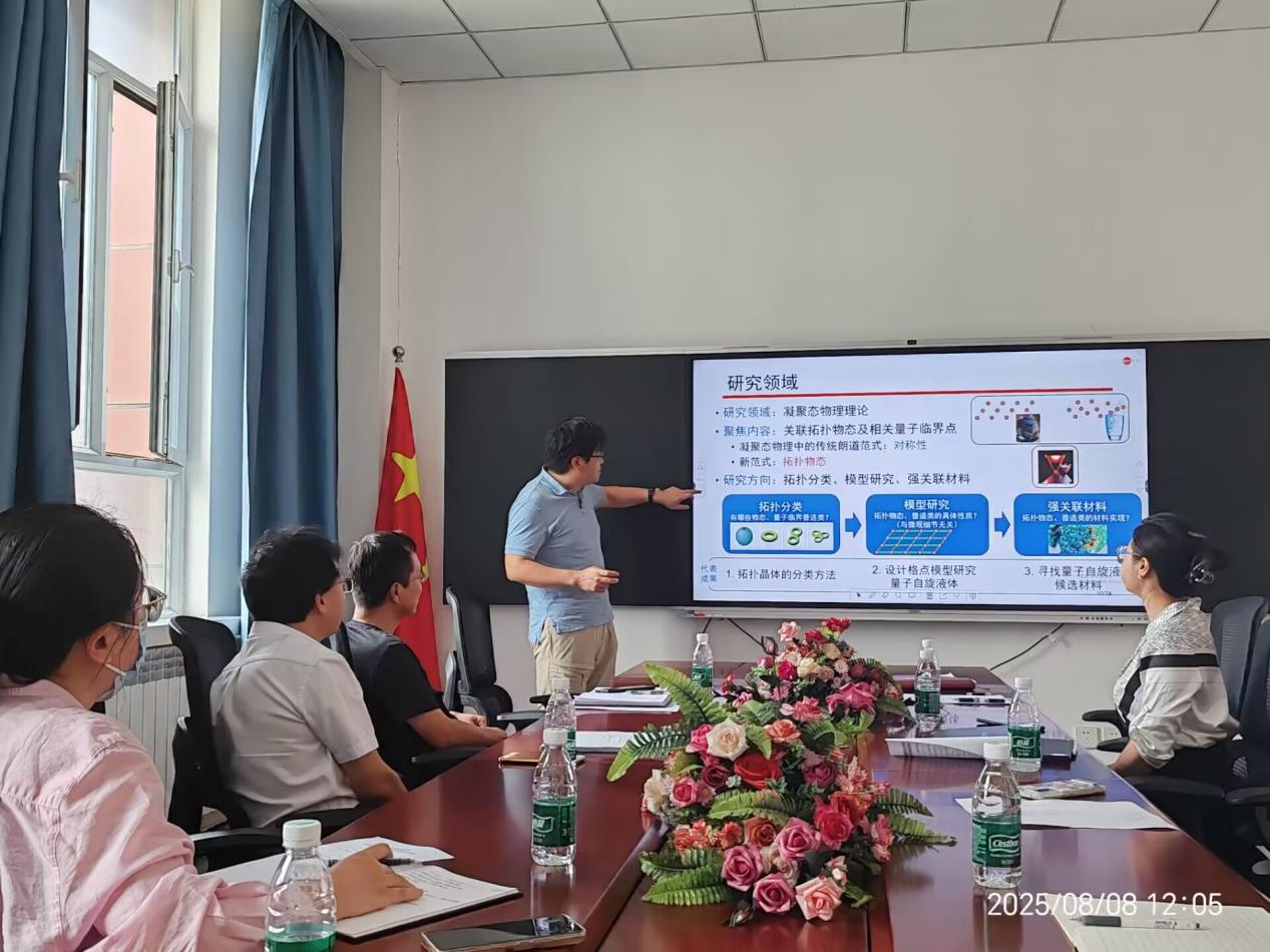 在交流中,戚扬研究员聚焦自身深耕的凝聚态物理理论研究,详细介绍了其团队在关联拓扑物态及相关量子临界点方向的研究成果。他的研究主要围绕拓扑分类、模型构建与强关联材料等方向。相关研究成果已发表论文20余篇,共被引用500多次,为凝聚态物理领域的理论突破提供了重要支撑。