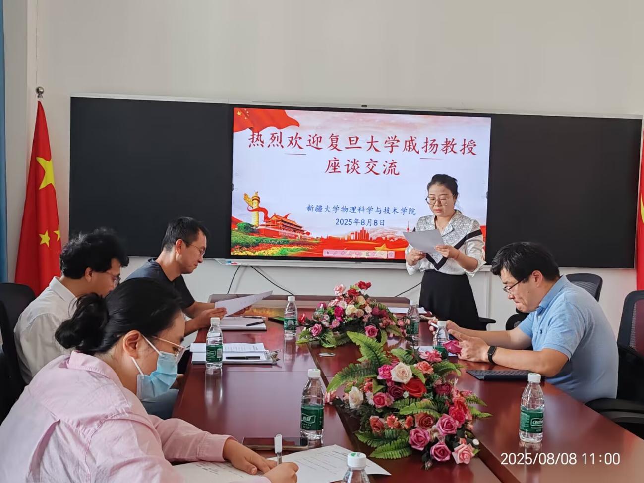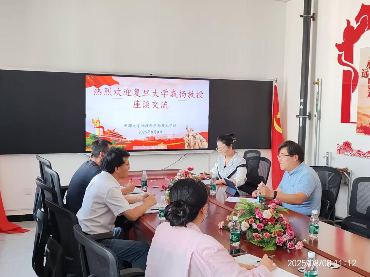 2025 年 8 月 8 日上午 11 时,复旦大学物理系戚扬研究员到访体育平台官网,并在A403会议室开展调研交流活动。体育平台官网学术副经理谢雪芳、低维量子体系的凝聚态理论团队负责人丁汉芹、理论物理系中心主任马青山等五位教师代表热情接待并参与座谈。