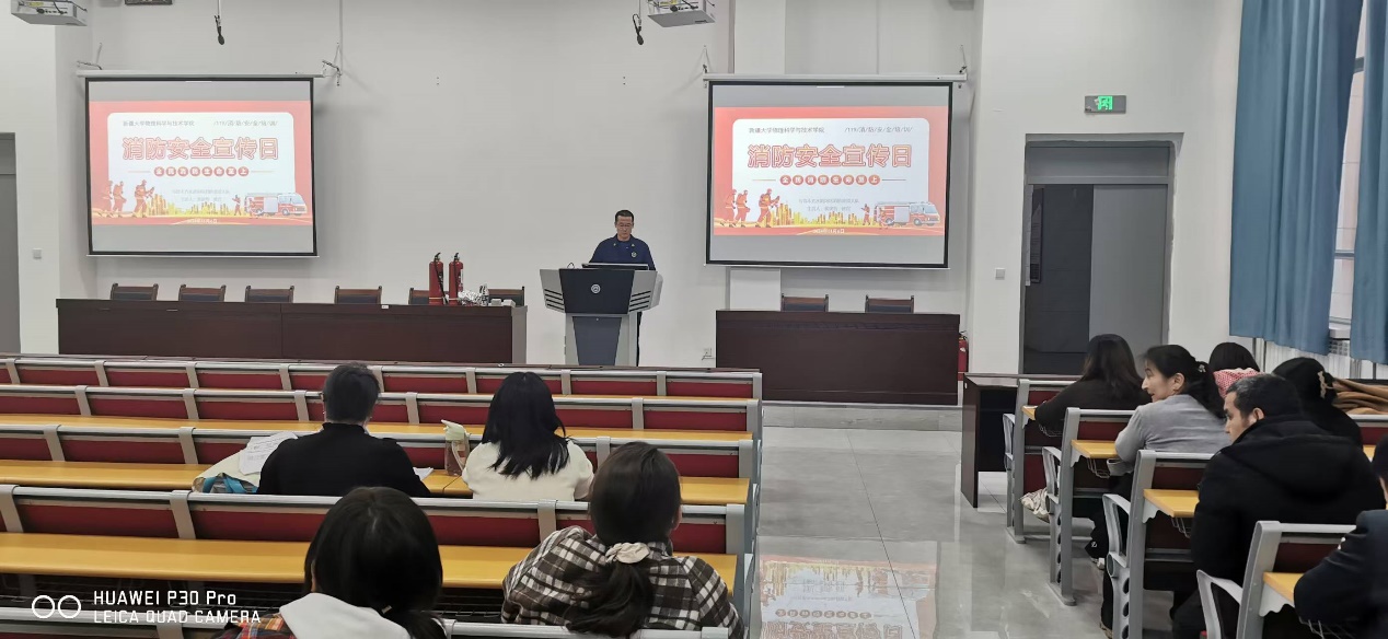 2024年11月6日下午,体育平台官网邀请了乌鲁木齐市水磨沟区消防救援大队的裴建智教官开展了“全民消防 生命至上”消防安全培训活动。此次活动旨在广泛动员全院师生关注消防、支持消防、参与消防,有效提升全民消防安全意识和自防自救能力,增强应对火灾等紧急情况的能力,确保校园安全。