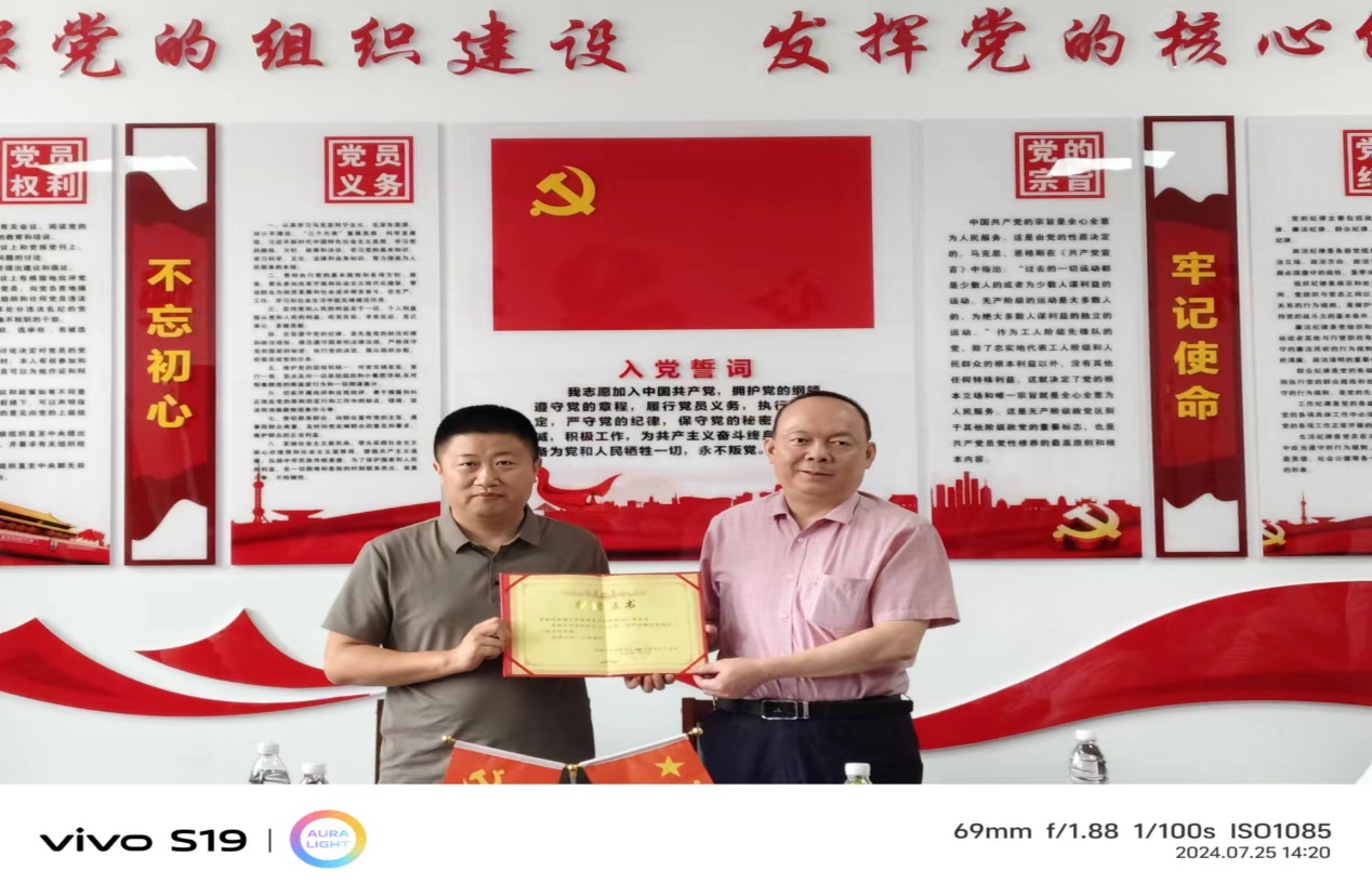 段海明书记和员工代表季红军员工举行了景观石捐赠签字仪式。段海明书记向季红军员工颁发了捐赠证书,向全体与会员工回赠了“百年校庆”纪念品。