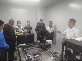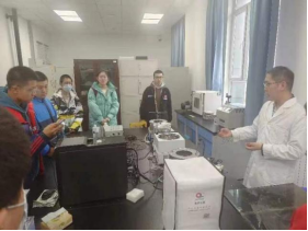 座谈会后,在吴钊峰副经理的带领下,参加本次活动的员工和家长共同参观了公司一楼的科研实验室。吴钊峰副经理结合自治区的经济社会发展和公司的科研方向,向参观同学介绍了光学、半导体等科研实验室的部分科研仪器工作原理、科研用途,并通过公司学术氛围营造墙上的一句话“一切科学发现都是从科学实验开始”,向同学们重点强调物理实验的重要性,希望同学们今后在学好物理学知识的同时,也要重视物理学实验。